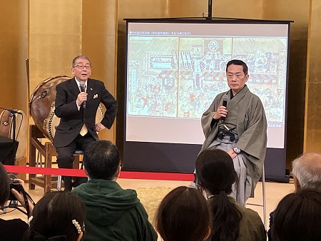 吾妻橋アサヒスクエアAにて、「アジアの人形芝居と身体表現・文楽と歌舞伎の場合」。桐竹勘十郎師との文楽と歌舞伎の身体表現の比較レクチャーデモンストレーション。(主催 財・現代人形劇センター) |