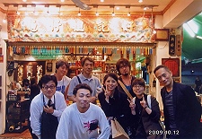 通訳のセンさん(向って左端)には大変お世話になりました。左端は又之助さん、真ん中は大道具の塙さん。